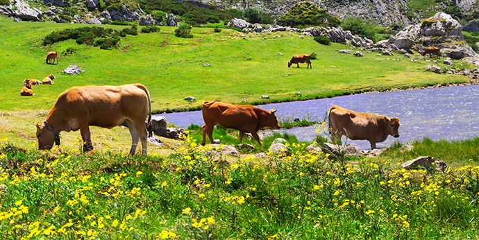 Asturiasko mendiak eta larre berdeak toki perfektua dira abeltzaintza ugariren bazka izateko eta haiek era naturalean elikatzeko, traizio handiko abeltzain asturiarren ardurapean.
